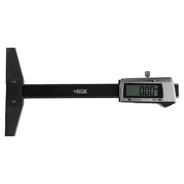 Электронный штангенглубиномер RGK SCG-100, в отличие от измерительных устройств подобного типа со штангой прямоугольного сечения, позволяет определять глубину не только пазов, выемок, канавок и т.п., но и малоразмерных глухих отверстий с заглублением до 100 мм. В данном инструменте роль выдвижной штанги выполняет тонкий стальной стержень цилиндрической формы с плоской опорной поверхностью. Широкое основание при минимальном люфте подвижной части дает возможность также оценивать перпендикулярность конструкционных элементов обрабатываемой детали.